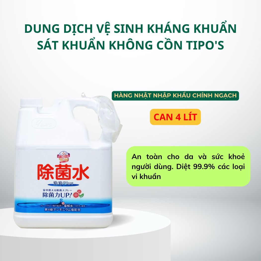 Dung dịch vệ sinh kháng khuẩn không cồn Tipo’s Nhật Bản là sản phẩm tiên tiến được nghiên cứu và phát triển dựa trên công nghệ hiện đại của Nhật Bản, mang đến giải pháp vệ sinh an toàn, hiệu quả cho mọi đối tượng người dùng. Trong bối cảnh các dịch bệnh truyền nhiễm ngày càng xuất hiện nhiều, nhu cầu sử dụng các sản phẩm vệ sinh cá nhân, đặc biệt là dung dịch kháng khuẩn, ngày một tăng cao. Tuy nhiên, sử dụng sản phẩm chứa cồn lâu dài có thể dẫn đến nhiều vấn đề về da như khô ráp, kích ứng hoặc thậm chí làm mất đi lớp màng bảo vệ tự nhiên của da. Từ thực tiễn đó, dung dịch vệ sinh không cồn Tipo’s ra đời, đáp ứng tối ưu nhu cầu làm sạch mà vẫn đảm bảo an toàn cho sức khỏe người sử dụng